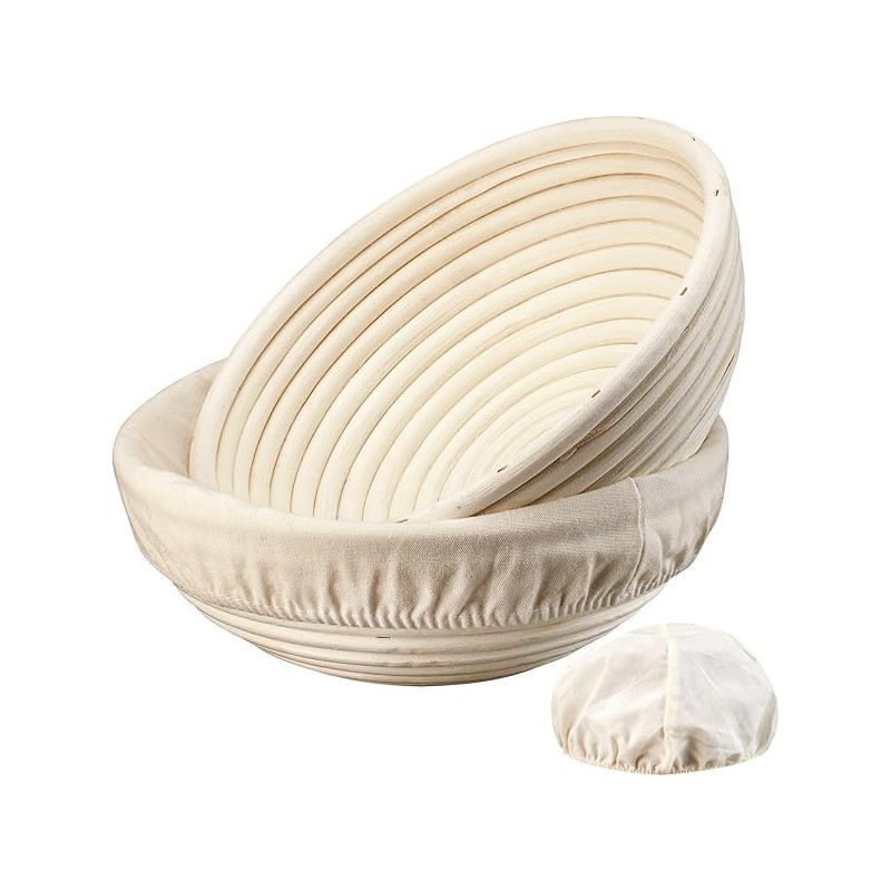 Banneton Bread Proofing Basket Banneton Basket Set Sourdough Proofing Basket Round Proofing Bowls Handmade Rattan Baskets and Liners (Round 9 inch set of 2)