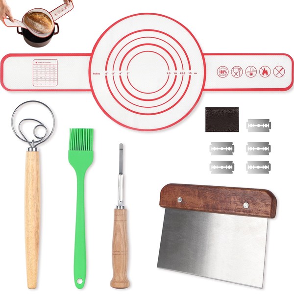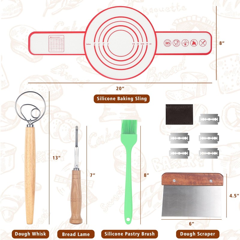 Banneton Bread Proofing Basket Set, 11 Inch Sourdough Proofing Basket and Bread Baking Supplies-Bread Lame, Danish Whisk, Bowl & Dough Scraper, Brush, (Sourdough Bread Baking Supplies)