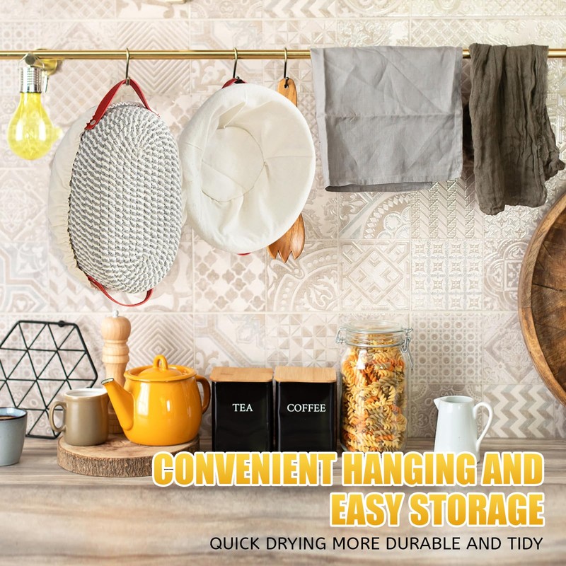 Easy to clean and store: This banneton bread proofing basket includes 2 baskets, padding and covering cloth, and is machine washable. The foldable design and the inclusion of hooks allow for easy drying and space-saving in any kitchen