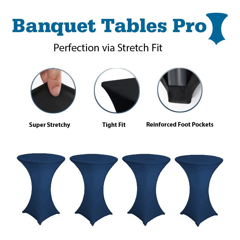 Banquet Tables Pro 30 Round x 42" Height Fitted Spandex Highboy Table Cover (4 Pack, Navy Blue)