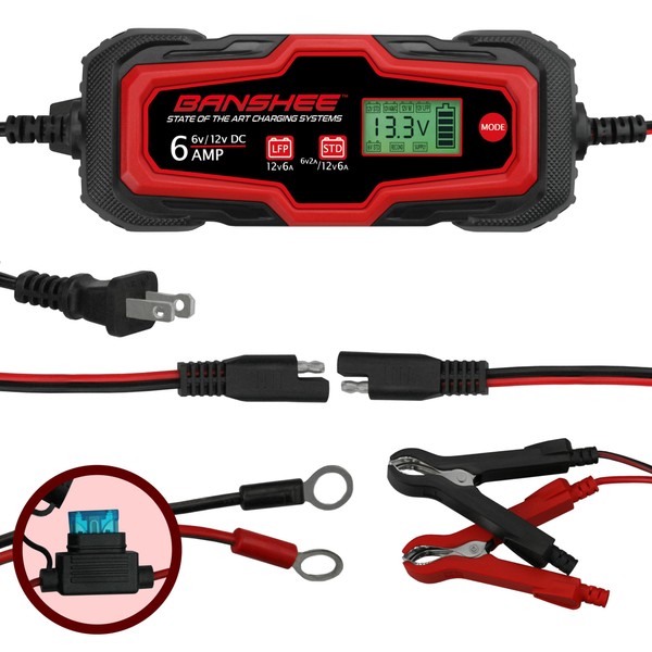 Banshee 6V/12V Charger Compatible with 022-0211-DL-WH 6V/12V, 6 Amp Battery Charger, Maintainer, & Reconditioner/Desulfator, Charger (022-0211-DL-WH)