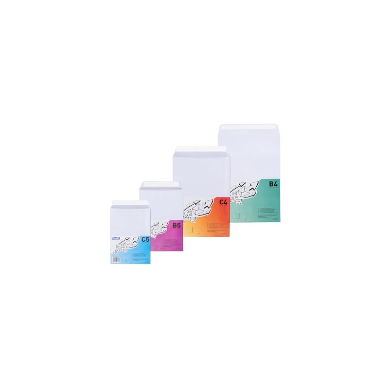 Klassische Briefumschläge in verschiedenen Formaten, hergestellt aus hochwertigem weißem Papier mit einer Grammatur von 80 g/m2. Selbstklebender Verschluss mit Klebesicherungsstreifen. Der Kleber muss nicht angefeuchtet werden.