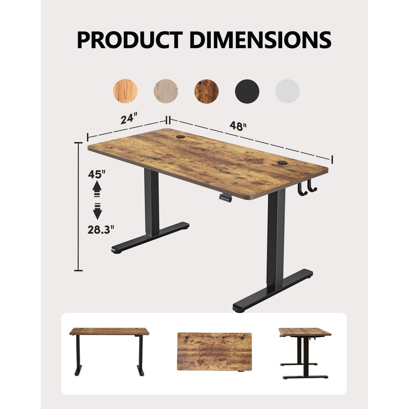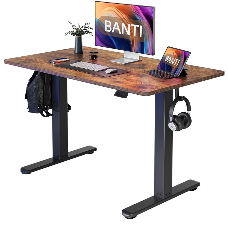 BANTI 48''x24''Height Adjustable Electric Standing Desk, Stand up Table, Sit Stand Home Office Desk with Splice Board, Rustic Brown Top