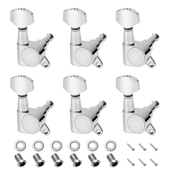 Banworks 6-In-Line Guitar Tuning Pegs 15:1 Ratio Sealed Guitar String Tuning Keys Machines with 45 Degree Fixing Tag for Strat ST Tele Electric Guitar Pack of 6 JT/JXQ-01 Chrome