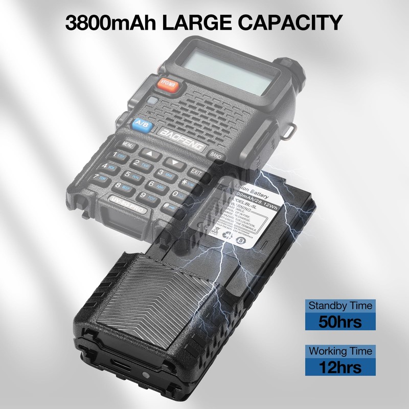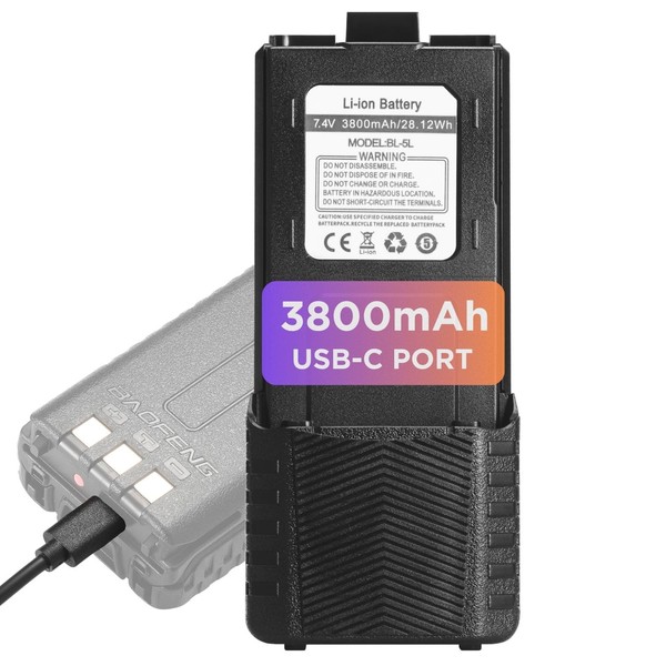 BAOFENG BL-5L 3800mAh Extended Battery Compatible with UV-5R UV-5RTP UV-5R 8W UV-5R Plus UV-5RA UV-5G UV-5G Pro GT-5R GT-5R Pro, Original Pack, Black (USB-C Port)