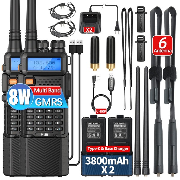 BAOFENG UV-5R Ham Radio Handheld 8W Upgrade UV5R Long Range Walkie Talkies Rechargeable 3800mAh M-5R 5RX Two Way Radio with USB-C Charger,Tactical Antenna for Hunting Survival Gear,2 Pack