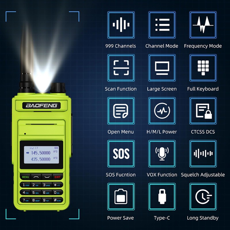 - Multi-function Ham Radio: Type-c charging, 999 channels, channel/frequency mode, scan function, large LED screen, full keypad, H/M/L tri-mode of power, CTCSS DCS, SOS function, VOX, squelch adjustable, waterproof, 1500mAh long-term stand-by