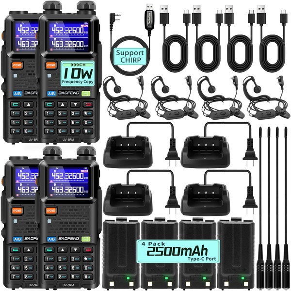 BAOFENG UV-5RM Ham Radio Handheld: 10W Ham Radios Long Range NOAA Weather Two Way Radios Copy Frequency with Programming Cable, 2500mAh Battery, Type-C Charging, BAOFENG Radio 4 Pack