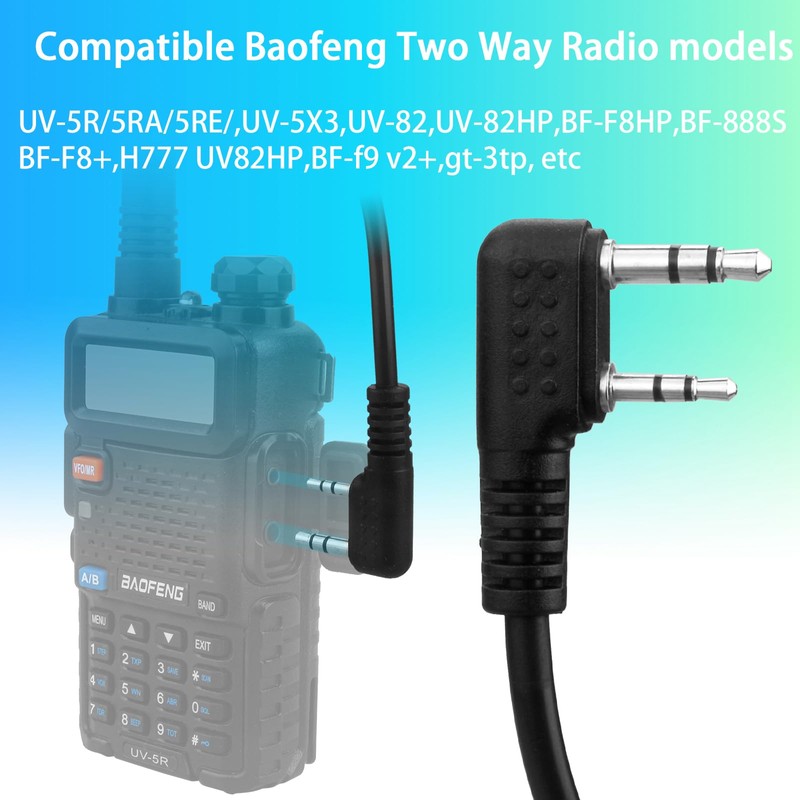 - Universal Compatibility: This BAOFENG walkie talkie earpiece with mic is designed to work seamlessly with a variety of models, including 2 pin, Retevis H-777, RT21, RT22, RT68, RT18, RT19, RT27, RT-5R, Baofeng UV-5R series, BF-F8HP, BF-888S, and more. It's the perfect accessory for drivers, hunters, campers, and anyone on the go.