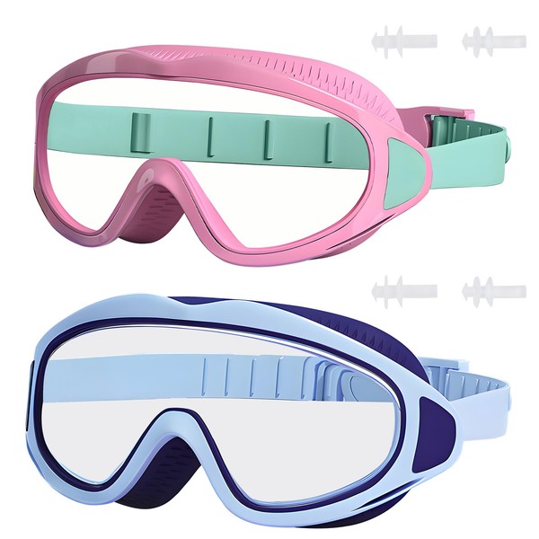 BAOHULU Kids Swim Goggles, 2 Pack Swimming Goggles for Boys & Girls, Anti-Fog Anti-UV Wide View Pool Glasses GY05_C_PinkGreen/SkyBlue