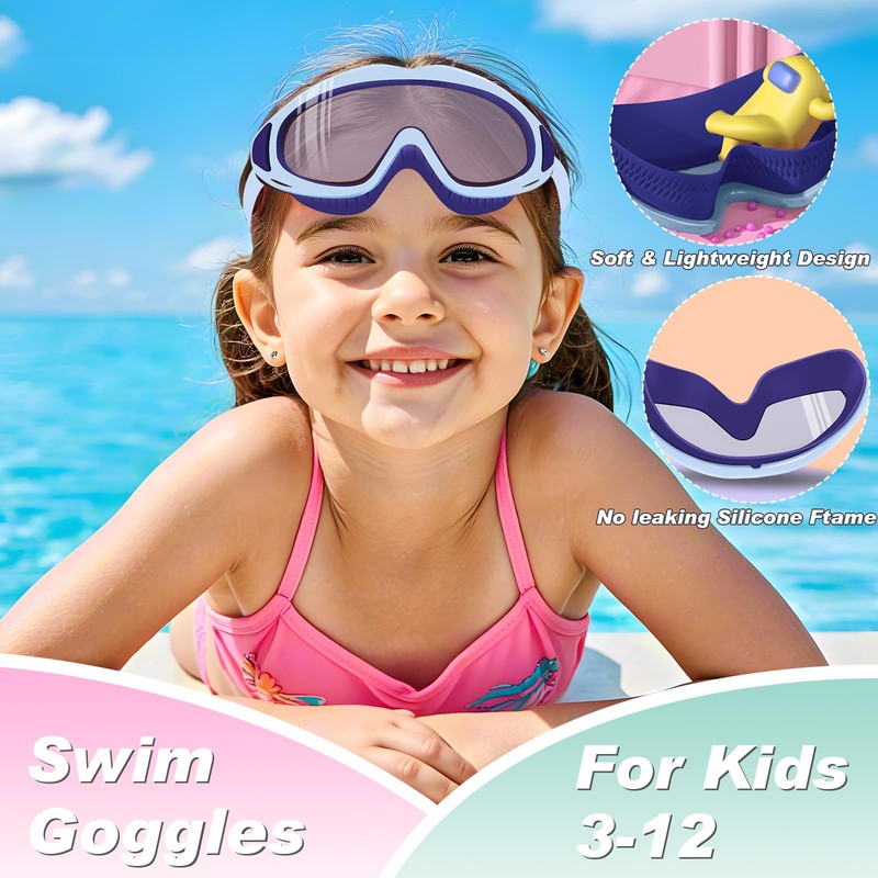 - 💕【Anti-Fog Technology】 Kids swimming goggles equipped with advanced anti-fog technology, ensures crystal-clear vision underwater, allowing your child to focus on their swimming skills without distractions.