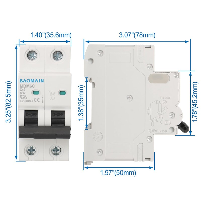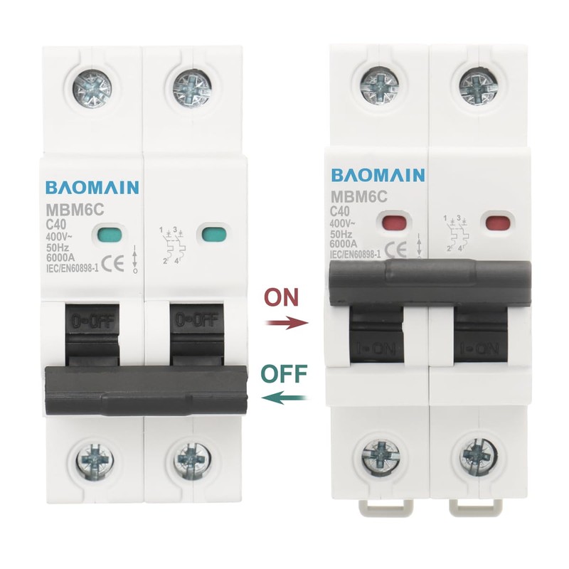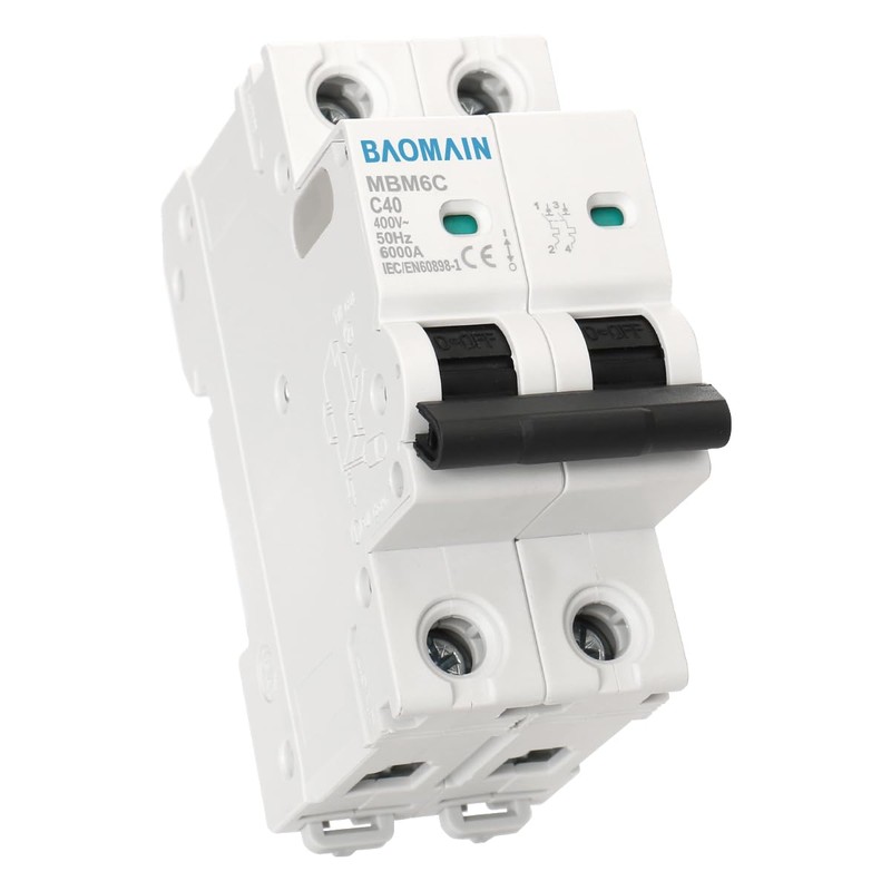 Baomain 40A AC Miniature Circuit Breaker, AC 400V 50Hz 6000A 2 Pole C65 MCB DIN Rail Mounting,MBM6C