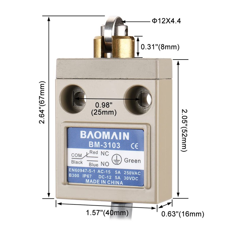 Baomain Limit Switch TZ-3103 Cross roller Plunger SPDT Momentary IP67