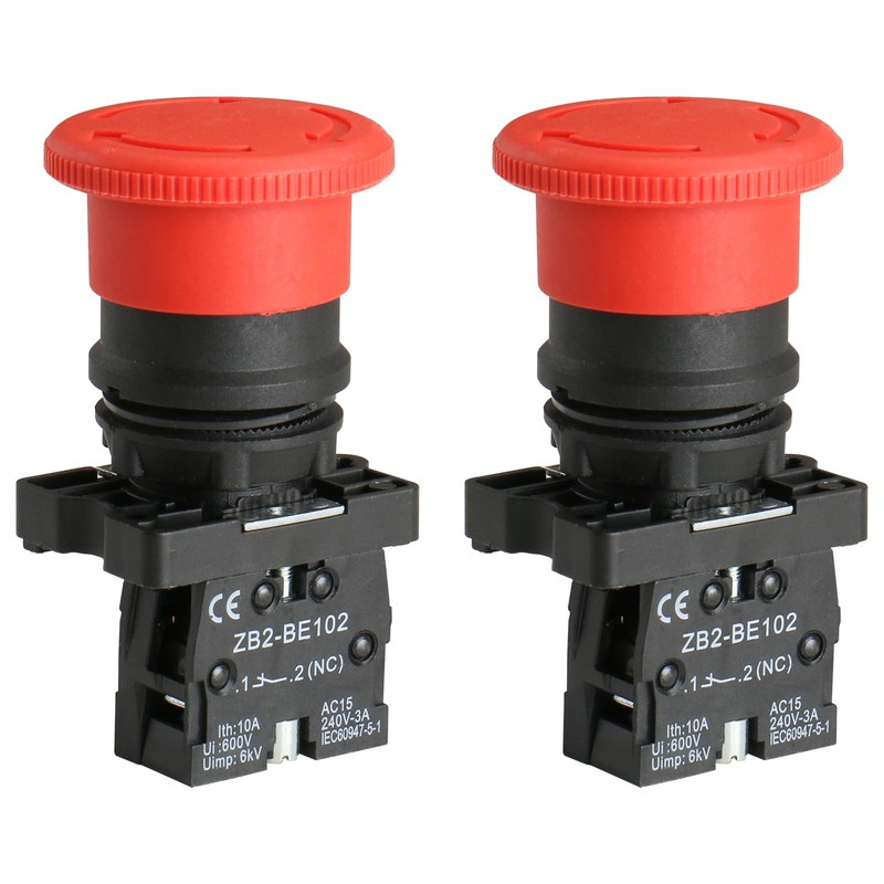 Baomain Push Button Switch ZB2-BE102C 22mm NC N/C Red Mushroom Emergency Stop 600V 10A (2PCS)