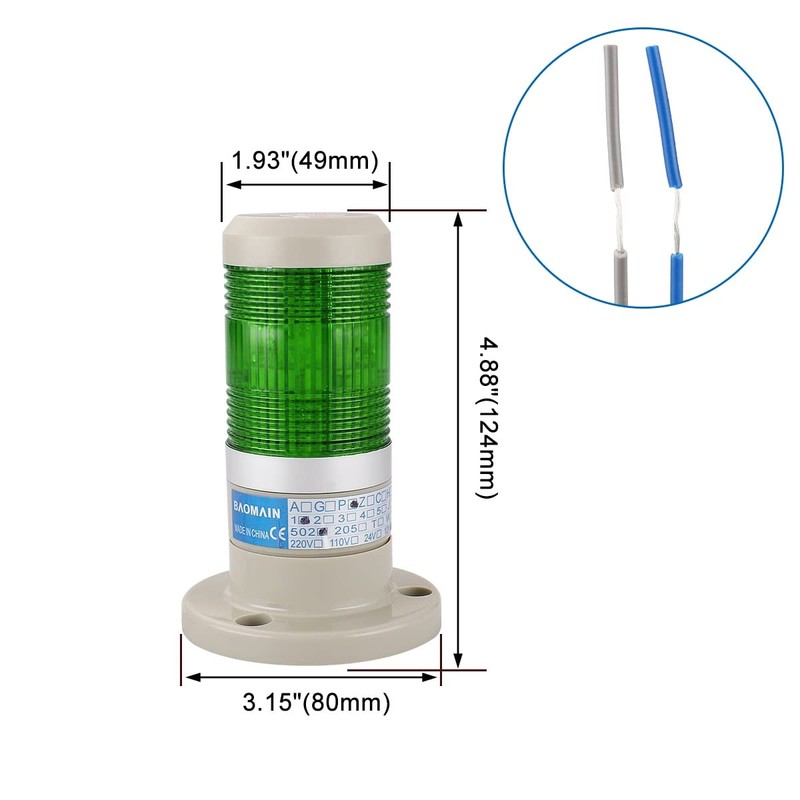 Baomain Warning Continuous Light 220 VAC Green LED Industrial Signal Light To...