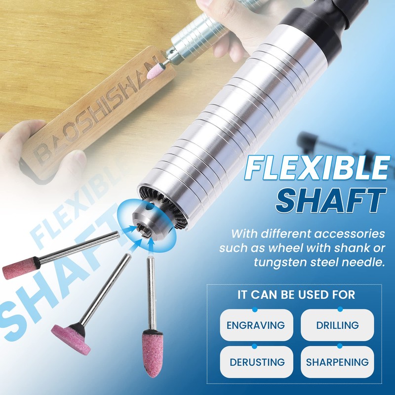 - COMES WITH ALL THE ACCESSORIES YOU'LL NEED - You will receive different polishing wheels*3 (cloth wheel, grinding wheel, fiber wheel), drill chuck*1, flexible shaft*1, different corundum grinding wheels with shank*3. Satisfy your different requirements for polishing, grinding, engraving, drilling, derusting, sharpening, etc. Perfect for small to medium pieces!