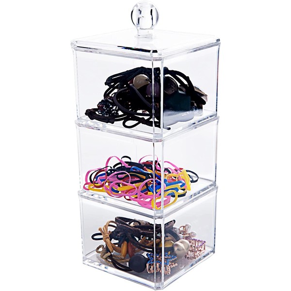 Baoswi Hair Accessory Organizer, 3 Drawer Clear Plastic Stackable Jewellery Accessories Container Storage Holder with 1 Lid (3.82L X 3.82W X7.87H, Clear)