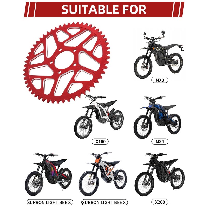 - [Fitment] The sprocket is fit for dirt bike Sur Ron Light Bee S/ Light Bee X/ X160/ X260/ Talaria Sting MX3/ Talaria Sting R MX4. Please confirm the model before purchasing.