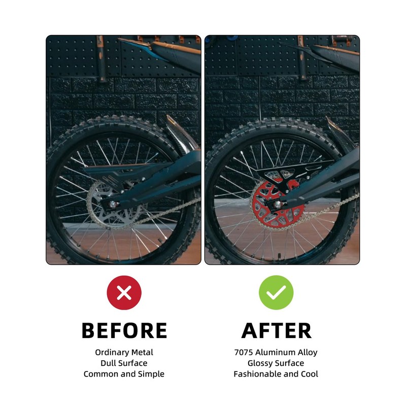 - [Attractive Appearance] The sprocket for Surron S has undergone anodizing treatment on its surface, with exquisite workmanship and a very beautiful appearance.