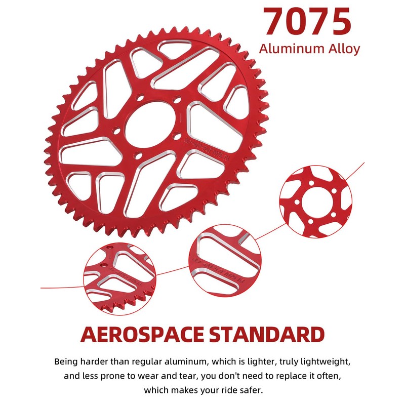 - [7075 Aerospace Aluminum Alloy] Chain sprocket for Talaria Sting is made of high-quality material, which is harder than regular aluminum and less prone to wear and tear. You don't need to replace it frequently, which can make your riding safer.