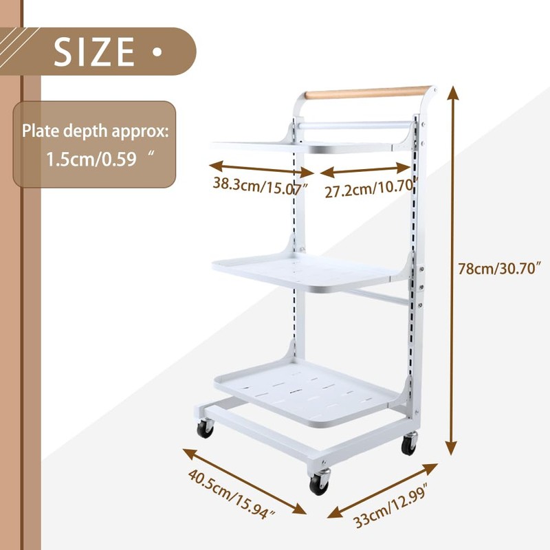 - Adjustable Tiers: This utility organizer can be customize the height of each layer according to your needs. Hollow-out design storage plates to keep dry and ventilated.