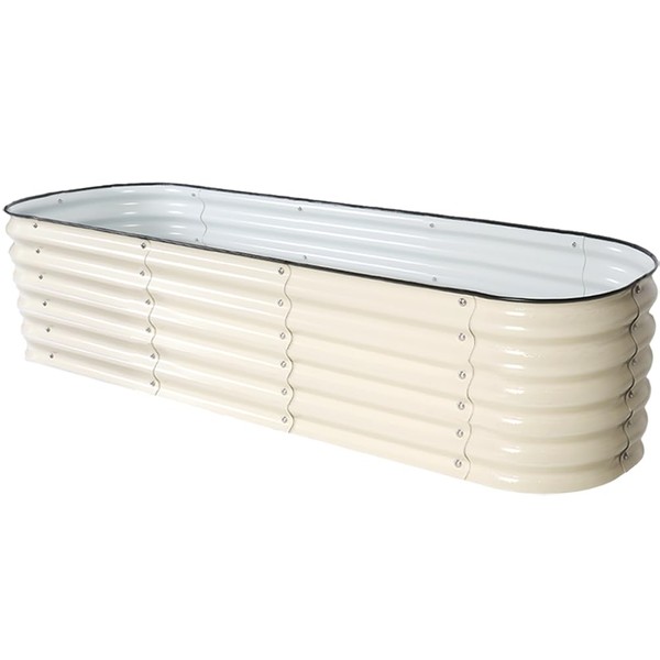 BAOYOUNI Oval Planter Box Outdoor Raised Garden Bed Kit Large Metal Plants Grow Boxes 16.92'' Tall for Vegetables, Herbs, Flowers & Succulents, Ivory, 76.77'' X 23.62'' X 16.92''