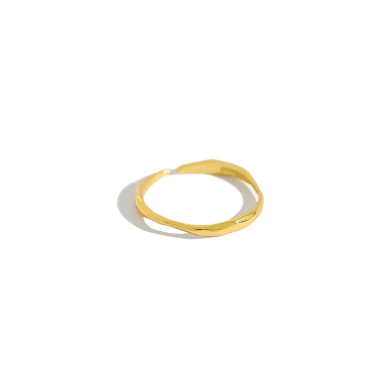BAPLU Wave Design Open Ring, 925 Silver, 18K Gold Plated, Adjustable Size