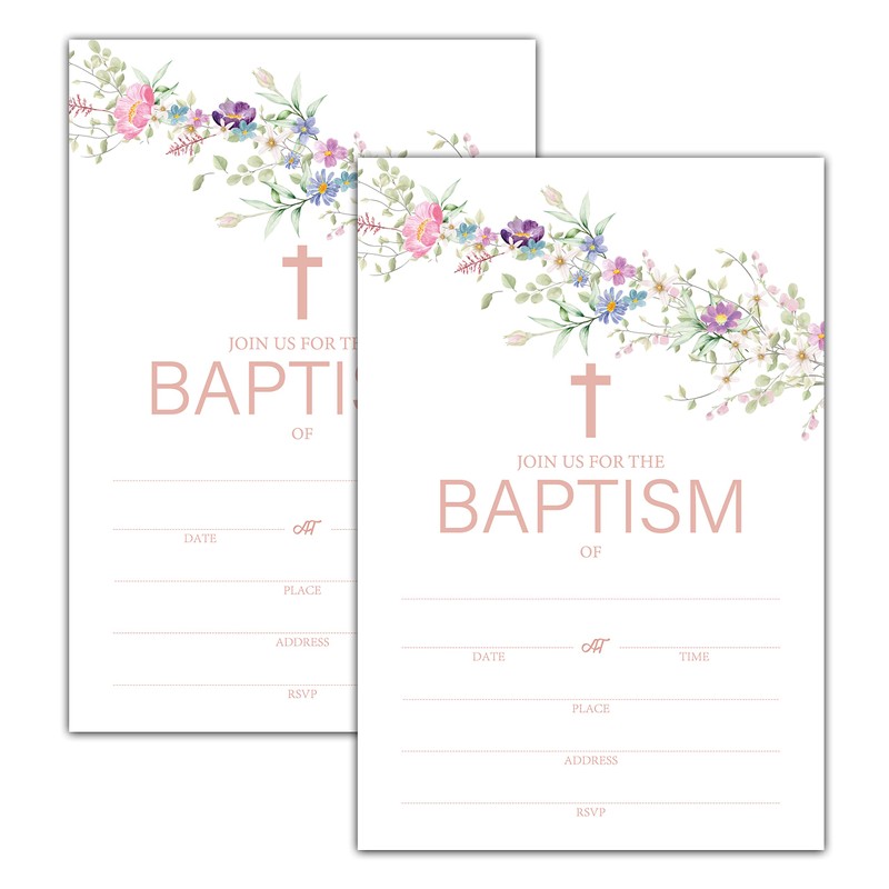 Baptism Invitations with Envelopes, Wildflower, Floral Greenery, Invites for First Communion, Christening, Religious Celebration & Reconciliation, Baby Dedication (XLyqk-005)