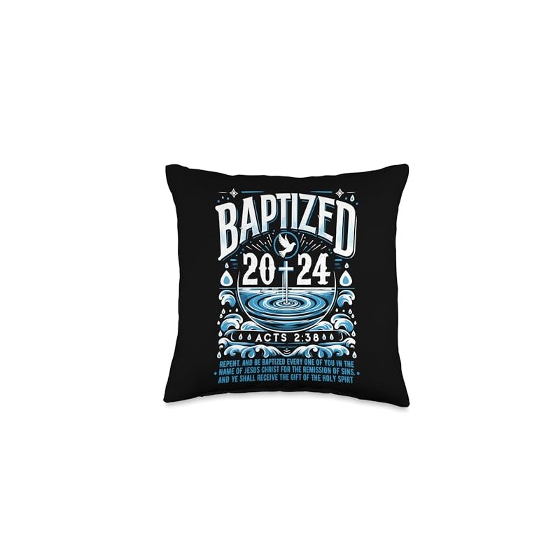 Baptized in 2024 Shirt Bible Verse for Christian Baptism Throw Pillow