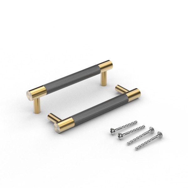 Bar Cabinet Handle Knob Pull Brushed Satin Gold/Brass Finish with Electroplated Dark Gray 6" (5" Hole Center) for Kitchen Cabinet Hardware/Dresser Drawer Handles 10 Pack