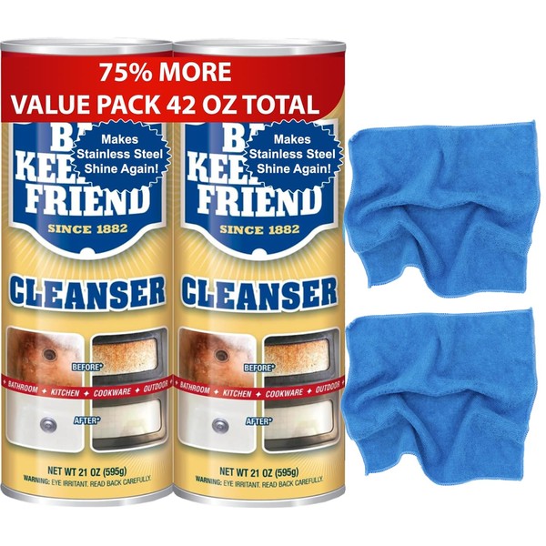 Bar-Keeper’s-Friend Cleanser and Polish Powder 21 oz (2 Pack) Multipurpose Cleaner, Rust Stain Remover + 2x Microfiber Cleaning Cloth 14x14