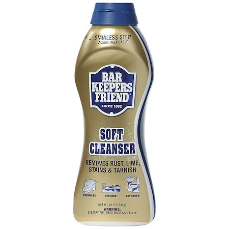 - Features: Soft Cleanser, All Purpose Cleaner, Surfaces for Use On Aluminum, Brass, Bronze, Ceramic, Copper Alloys, Corian, Glass, Porcelain, Stainless Steel, Bottle, 26 oz, Fragrance Citrus, Ready to Use/Concentrated Ready to Use, Recommended Dilution Ready to Use, Primary Chemical Citric Acid, Oxalic Acid, Liquid, Standards Not Applicable, Butyl Free Yes, VOC Content 0 Percent, NSF Rating Not Rated, Product Series Bar Keepers Friend, Rinse Required Yes, Nonflammable Yes, Net Weight 26 oz