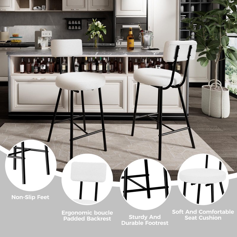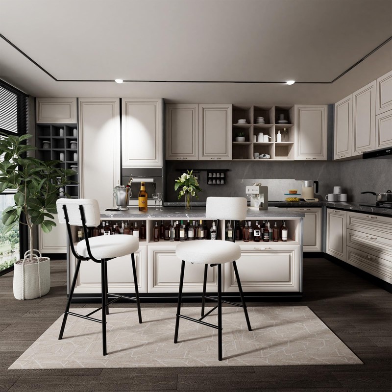 Elevate your space with the Bar Stool Chairs Set, featuring luxurious lambswool upholstery, ergonomic design, and a sturdy metal frame—perfect for adding comfort and style to your kitchen island or dining area!