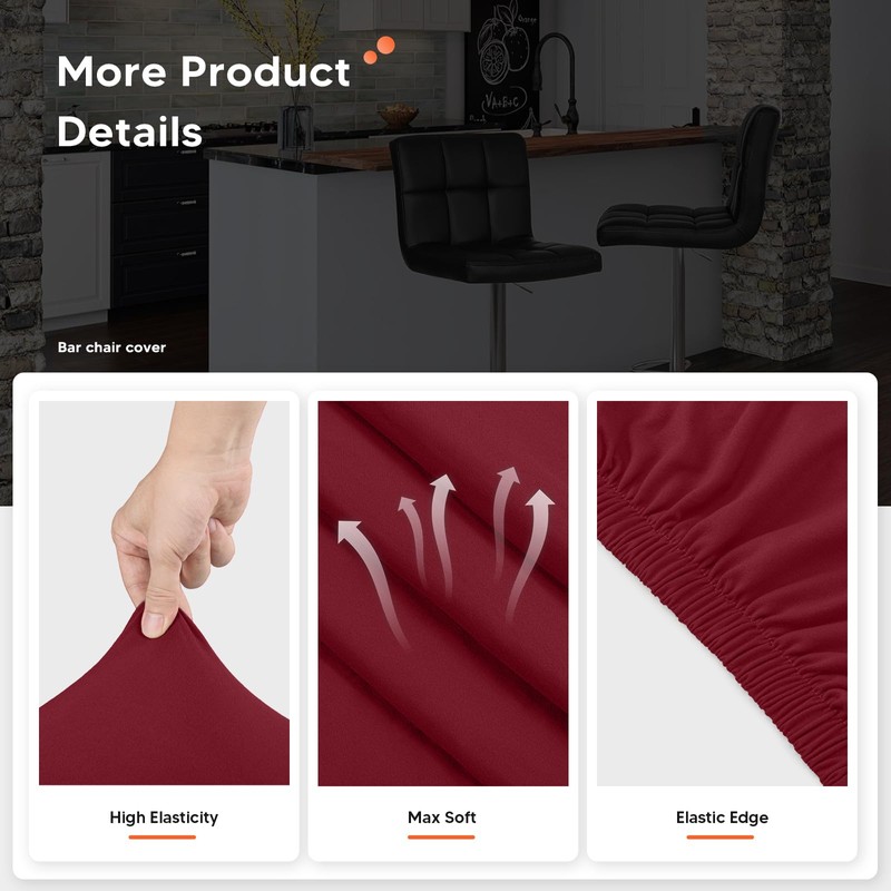 - Elastic material: these bar stool covers are made of elastic polyester fabric. The soft fabric provides a comfortable feel and is highly elastic, so it wraps the chair in 360°.
