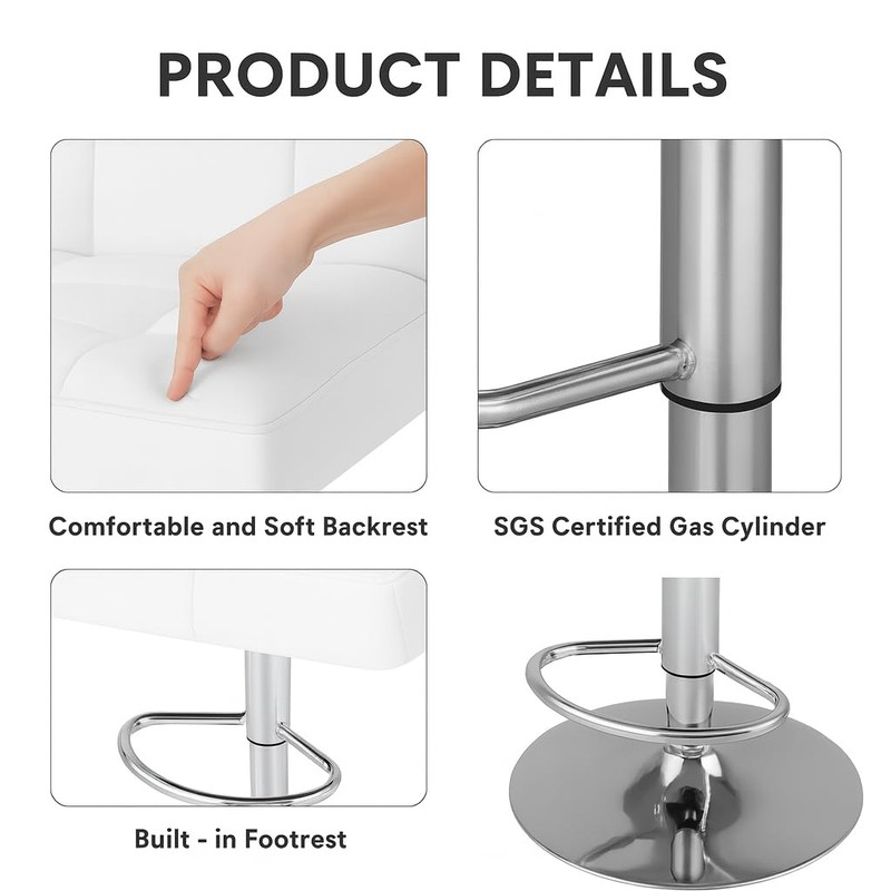- Elevate your space:SageNest’s premium bar stools designed for both comfort and style with adjustable height, 360-degree swivel, and plush PU leather upholstery. This counter stools set includes a supportive backrest and ergonomic footrest, perfect for creating a welcoming atmosphere at your kitchen island, dining room, or home bar.