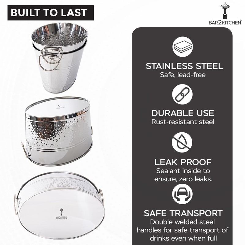 - Keep More Drinks Cold - Our 24 L combined capacity, stainless steel ice bucket is perfect for chilling wine, soda & beer. This 2-set metal beverage tub can fit 16 to 20 wine bottles with 20 lbs. of ice.