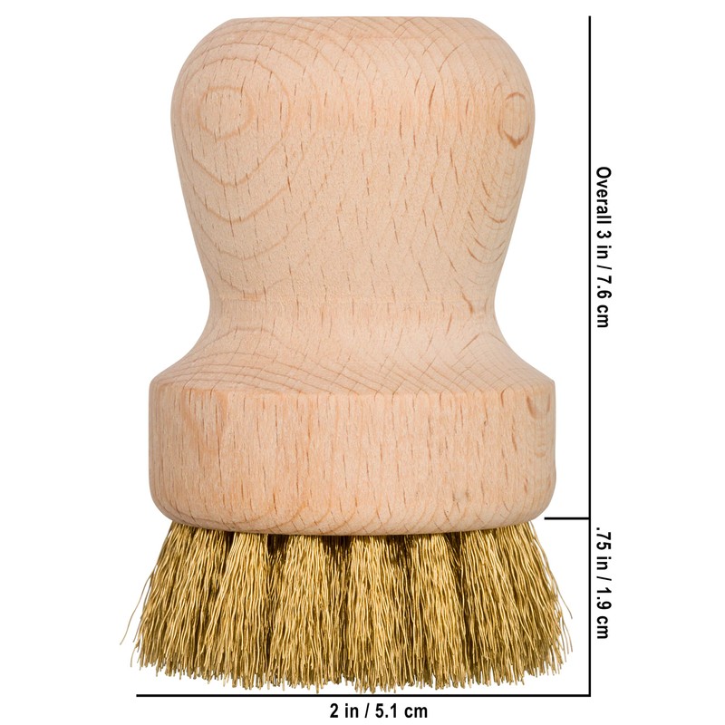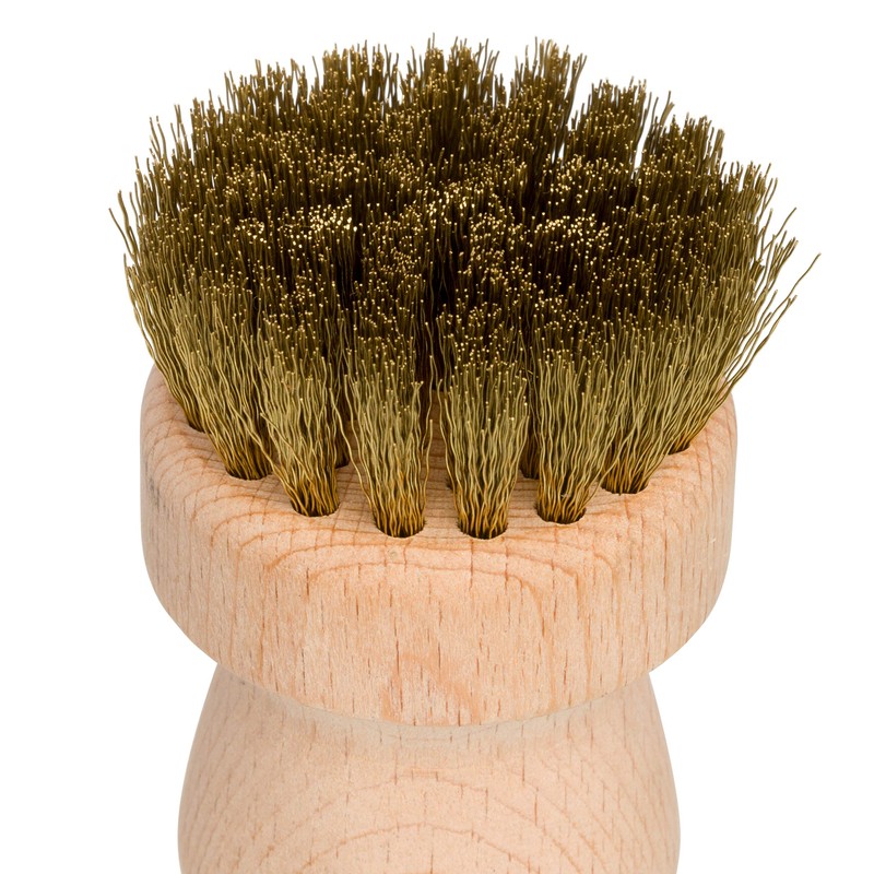 Small, handy brass brush for cooking grates and hobs. Size: diameter 5 cm, material: untreated beech wood, fitting: brass wire