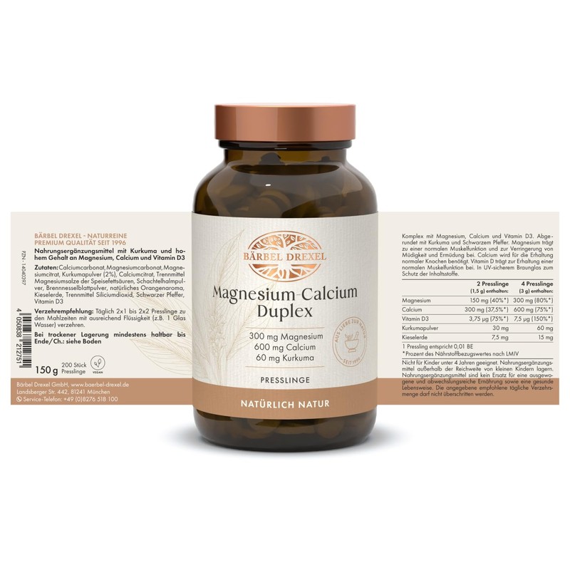 BÄRBEL DREXEL Magnesium Calcium duplex plus Kurkuma Presslinge - ganzheitlicher Bewegungskomplex (200 Stk) Natürliche Inhaltsstoffe ohne Zusätze