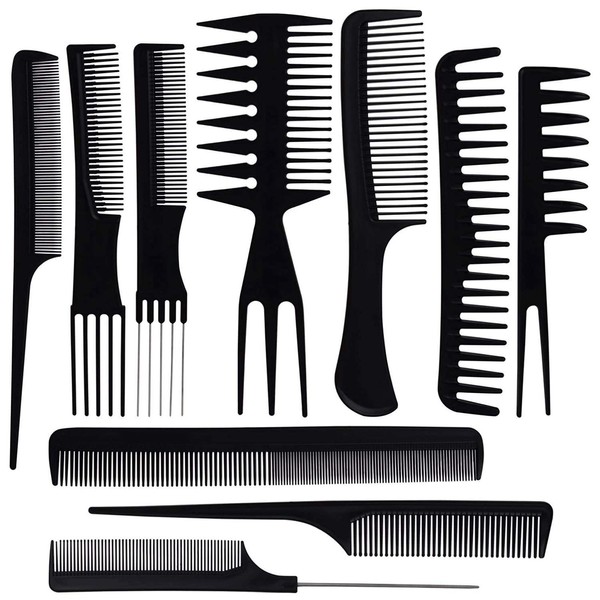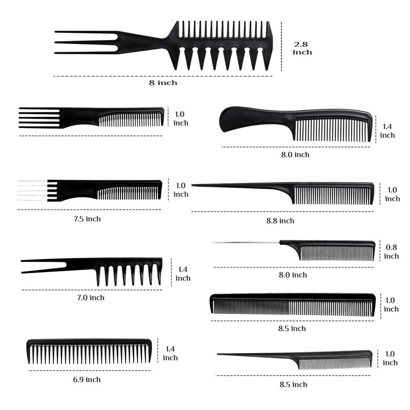 - These 10 pieces professional barber comb set they are all made of carbon fiber, and can be used for thick hair, sparse hair, curly and straight hair. They are not easy to bend and break, and are heat-resistant and anti-static, making them very suitable for professional hair design.