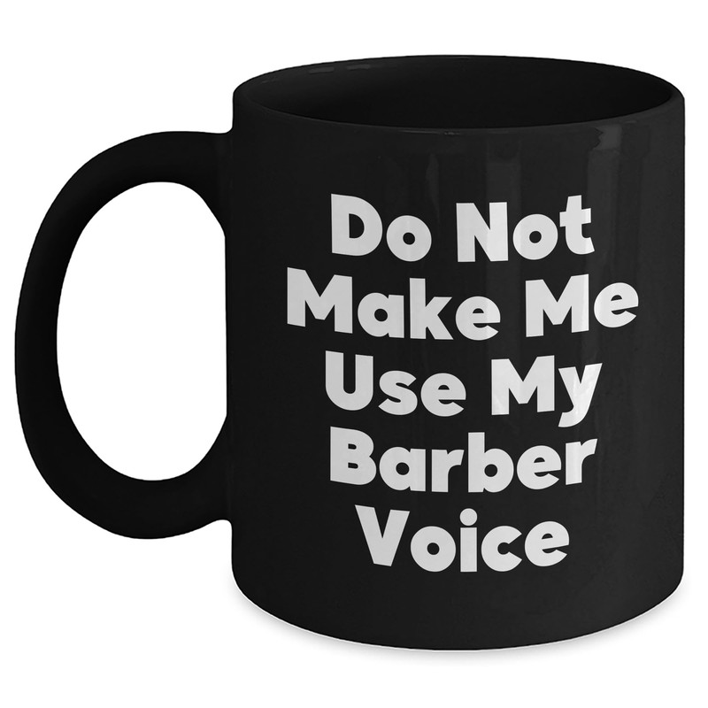 Are you a Barber enthusiast or searching for a unique gift for the Barber in your life? Look no further! This delightful Black Coffee Mug features the funny quote 'Do Not Make Me Use My Barber Voice' that will surely bring a smile to any Barber's face.