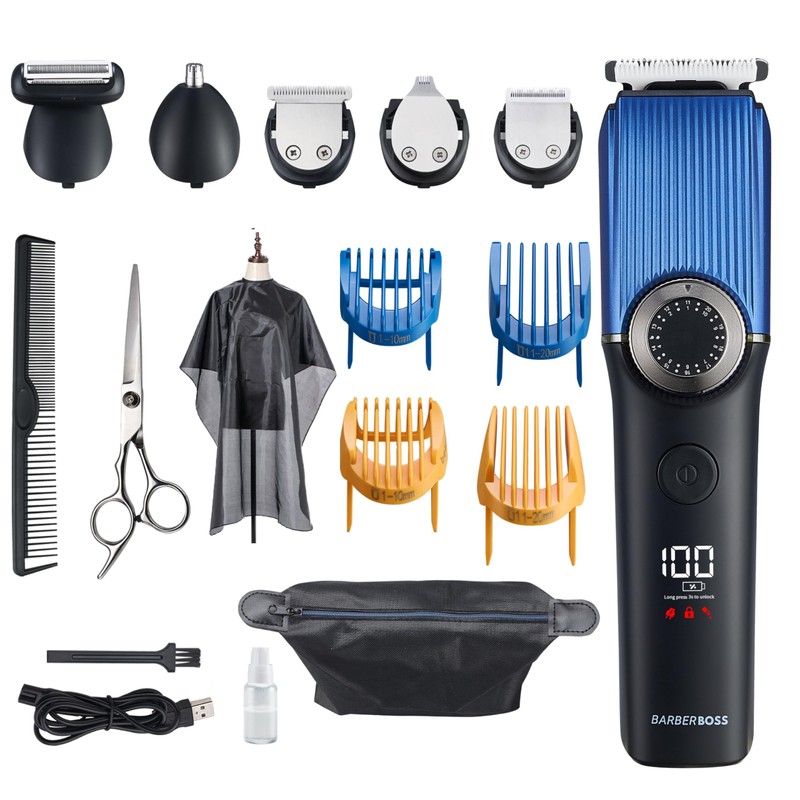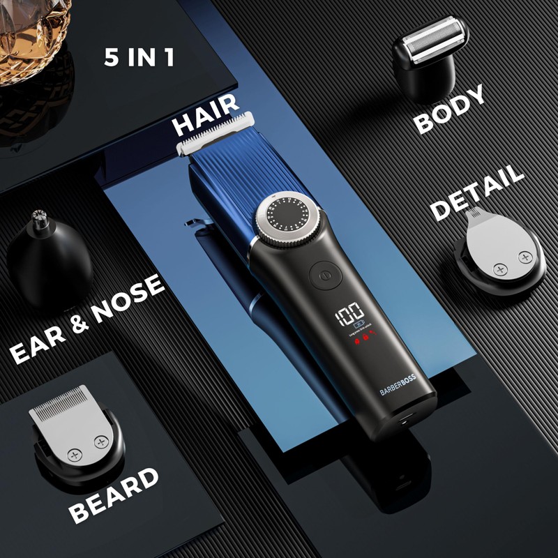 BarberBoss Bartschneider Herren, Haarschneidemaschine - Nasen-, Ohr- & Bartpflegeset, Schnurlose Haarschneidemaschine Herren: Trimmer für Männer, Fellpflegesets, wasserdicht, Nasenhaarschneider für