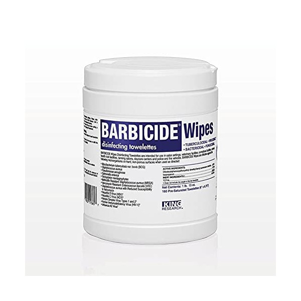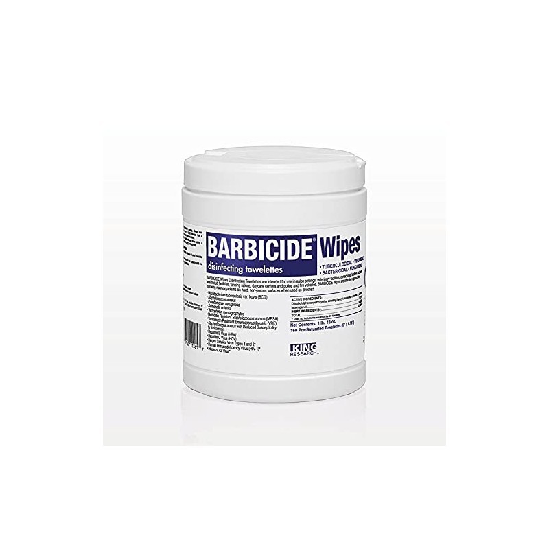 Barbicide Wipes are intended for use in salon settings, veterinary facilities, correctional facilities, schools, health club facilities, tanning salons, daycare centers and police and fire vehicles and other critical care areas where control of cross contamination between treated surfaces is required. Barbicide Wipes will clean and disinfect, when used as directed. Time is money and Barbicide Disinfecting Wipes maximize both! These economical, easy to use disinfecting wipes are EPA registered hospital grade and have a 2 minute contact time assuring your salon, spa or barbershop meet sanitation and disinfection guidelines in just a few short minutes!