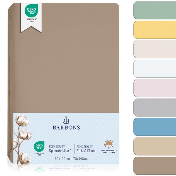 BARBONS Fitted Sheet for Baby/Cot - 100% Jersey Cotton Oeko-Tex Standard 100 Certified Bed Sheet for Baby Cot (Taupe - 60 x 120 cm / 70 x 140 cm)
