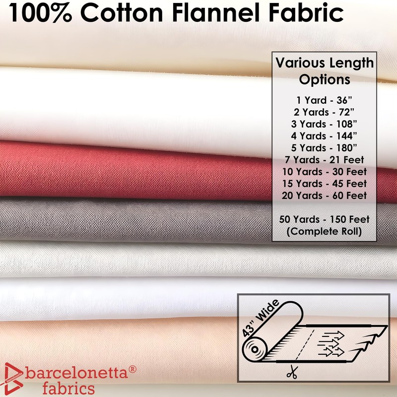 - DURABLE AND COZY FLANNEL FABRIC FOR CRAFTS - Cotton flannel fabric is a must-have for sewing and crafting. Made from 100% cotton, this flannel fabric is perfect for creating warm blankets, pajamas, and pet beds. Use this cotton fabric for sewing quilts, tablecloths, and other home décor items. This flannel fabric offers the softness and quality you need for every creative project.