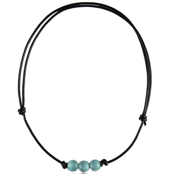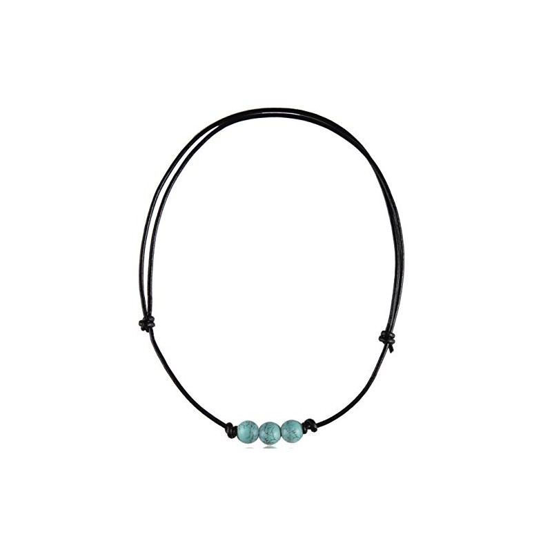 • ⒷⓎTurquoise Choker in Leather String for Women's / Men's Fashion Gift and any Occasion .😀ⒷⓎ 💑Lover 👧Daughter & Granddaughter 👩Women 🎁Gift 🎂Birthday Halloween 🌲 Christmas 🍻Beach Vacation 🎉Party 🛀Shower 🏊Swimming 🚵Sport ☕Dairy 🏄 Holiday