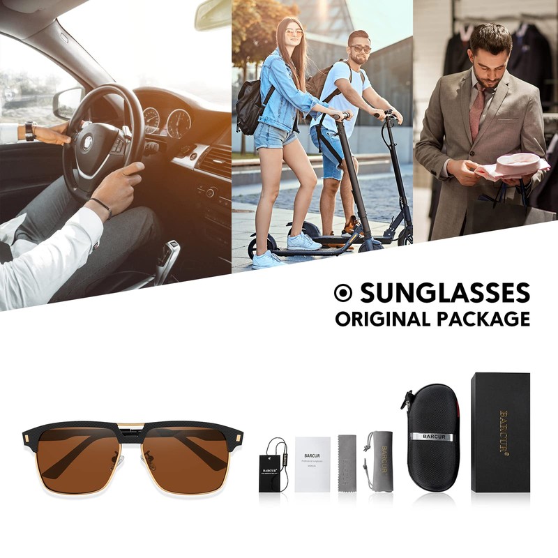Barcur Men’s Style Square Aviator Sunglasses Polarized Lens Metal Frame(Gold ...