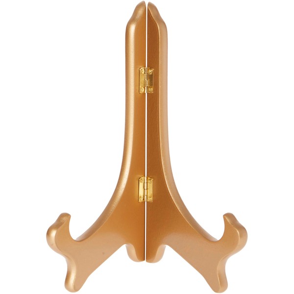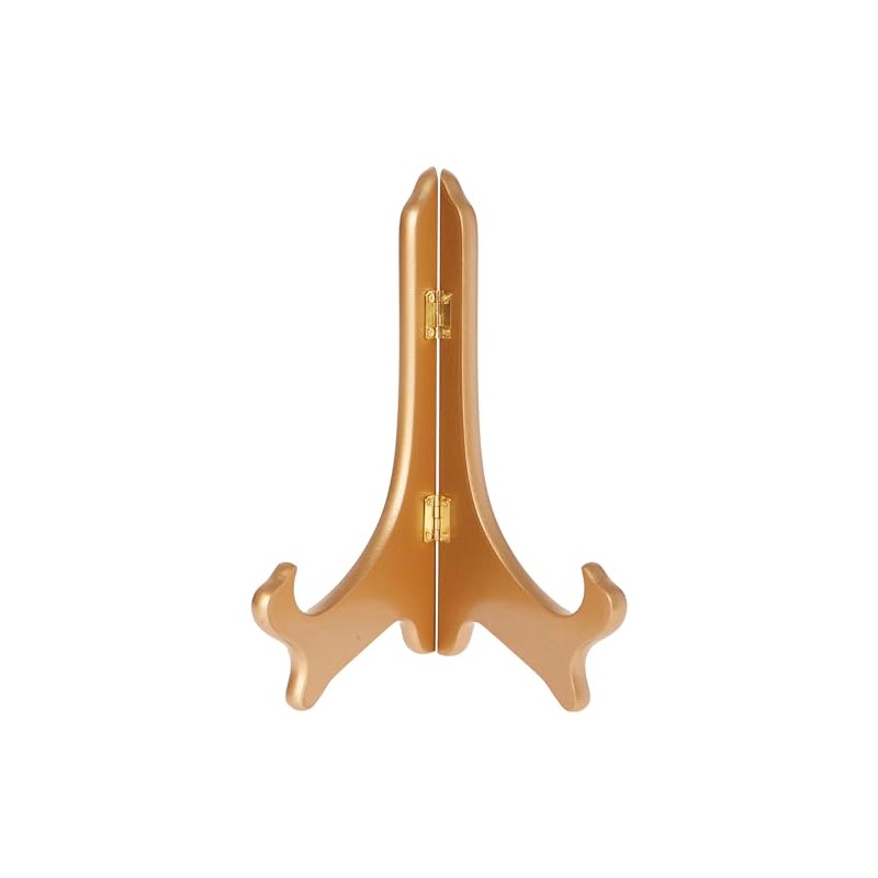 Bard's Hinged Gold-toned MDF Wood Plate Stand, 9" H x 7.25" W x 5" D (For 9" - 10.5" Plates), Pack of 3