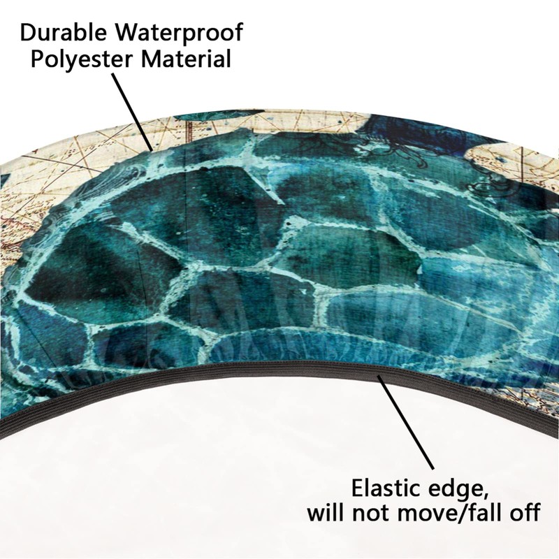 Bardic Ocean Turtle Round Fitted Tablecloth with Elastic Edge, Sea Turtles Table Cloth Waterproof Wipeable Round Table Cover for Indoor Outdoor Patio, Fits Tables up to 45"-56" Diameter