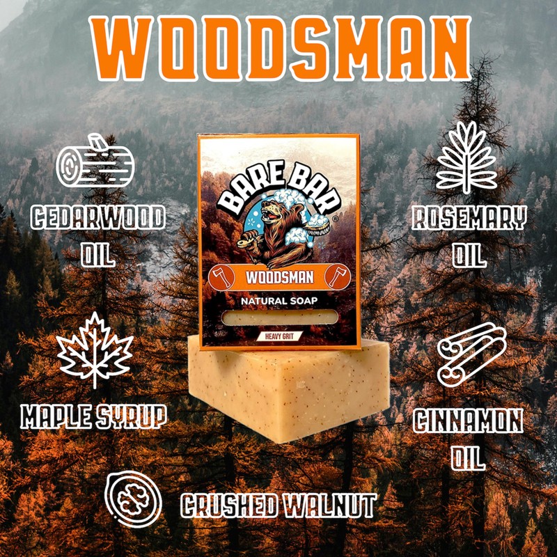 - Feel Like a True Woodsman Every Shower – These exfoliating bars are crafted to unleash your inner adventurer. With rich pine, sandalwood, and earthy notes, this Bare Bar bundle brings nature's best scents to your daily grooming. Say goodbye to grime, and hello to exceptionally clean skin!