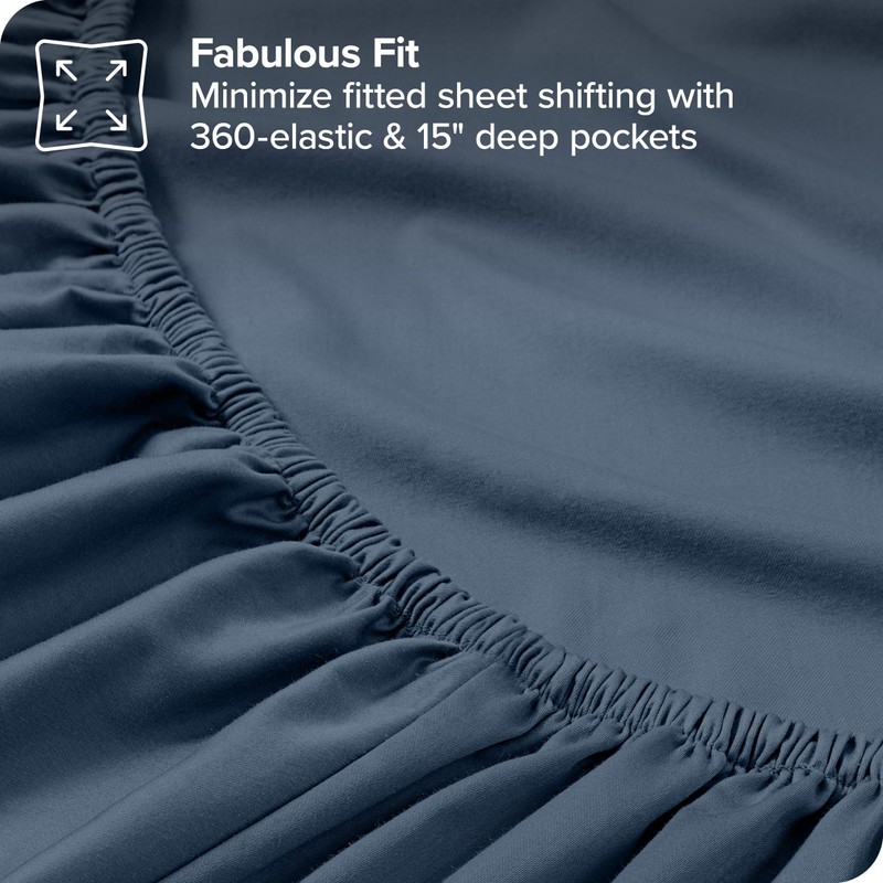 - IT’S ALL IN THE DETAILS: Combed, ring-spun yarn provides a tight weave for the ultimate in durability and breathability. 360-degree elastic ensures that fitted sheet fits snugly to your mattress. Fits mattresses from 6” to 15” deep. Tag on bottom of fitted sheet simplifies bed making. Pillowcases feature envelope closures in back to keep pillows in place.